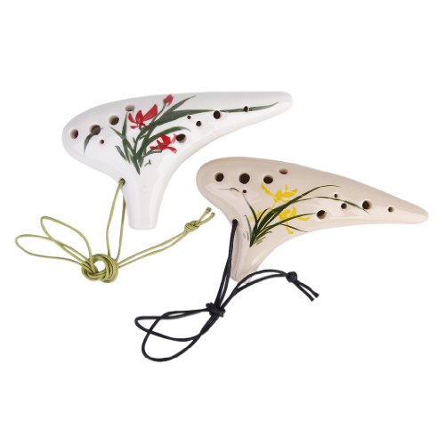 Comparateur de Prix, Comparatif Comparer les Prix. 12 Trous Alto C Céramique Flûte ocarina w / bamboo pattern - Livré avec un cordon rouge réglable,
